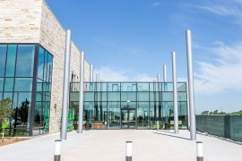The 7,500-square-foot space seats over 300 guests and features an entirely cashless kiosk payment system with inviting, user-friendly screens. Guests can order from any concept at one of four kiosks. Operated by the award-winning food service pioneer Bon Appétit Management Company, the restaurant serves wild-caught salmon and other sustainable seafood, Certified Humane ground beef, meat raised without antibiotics, and plenty of vegetarian and vegan options; other special dietary needs are cheerfully accommodated. Everything is made in house from scratch.