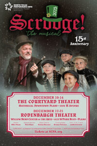 The spirit of the season returns to Plano as North Texas Performing Arts (NTPA) proudly presents the 15th Annual production of Scrooge the Musical, running December 10–21, 2025, at both the Courtyard Theater in Downtown Plano and the Rodenbaugh Theatre at Willow Bend Center of the Arts.